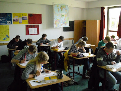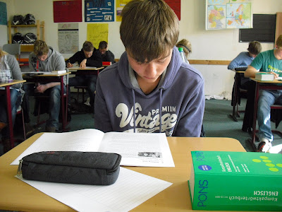 11th May 2010, 8.20 Clock: Crackling Excitement was in the room ... If the CD player for the listening text ? Work If further errors uncovered? Would the time that was given exactly enough? Well, all doubts were fortunately free: put everything ran like clockwork, and 20 more or less relaxed students to the company, "English", and with full concentration, as we see in the picture!