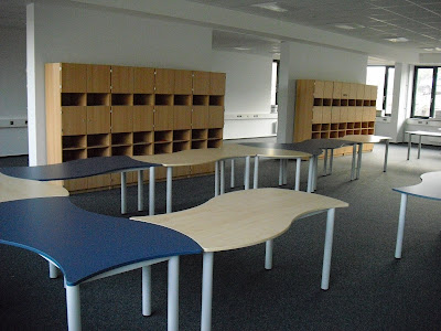 A first look at the new staff room in the new building: will probably go as early as next week, the move across the stage!