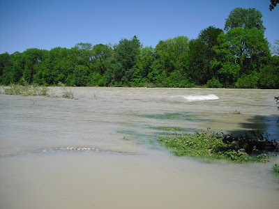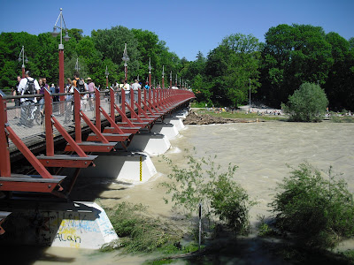 The Isar did see anything but inviting: because it had been raining non-stop until Friday, the river was a milky-brown broth, tearing everything with it, whether whole trees , scrub or other matters. At Baden was not thinking, of course, now and then an intrepid kayakers tried in the raging floods.