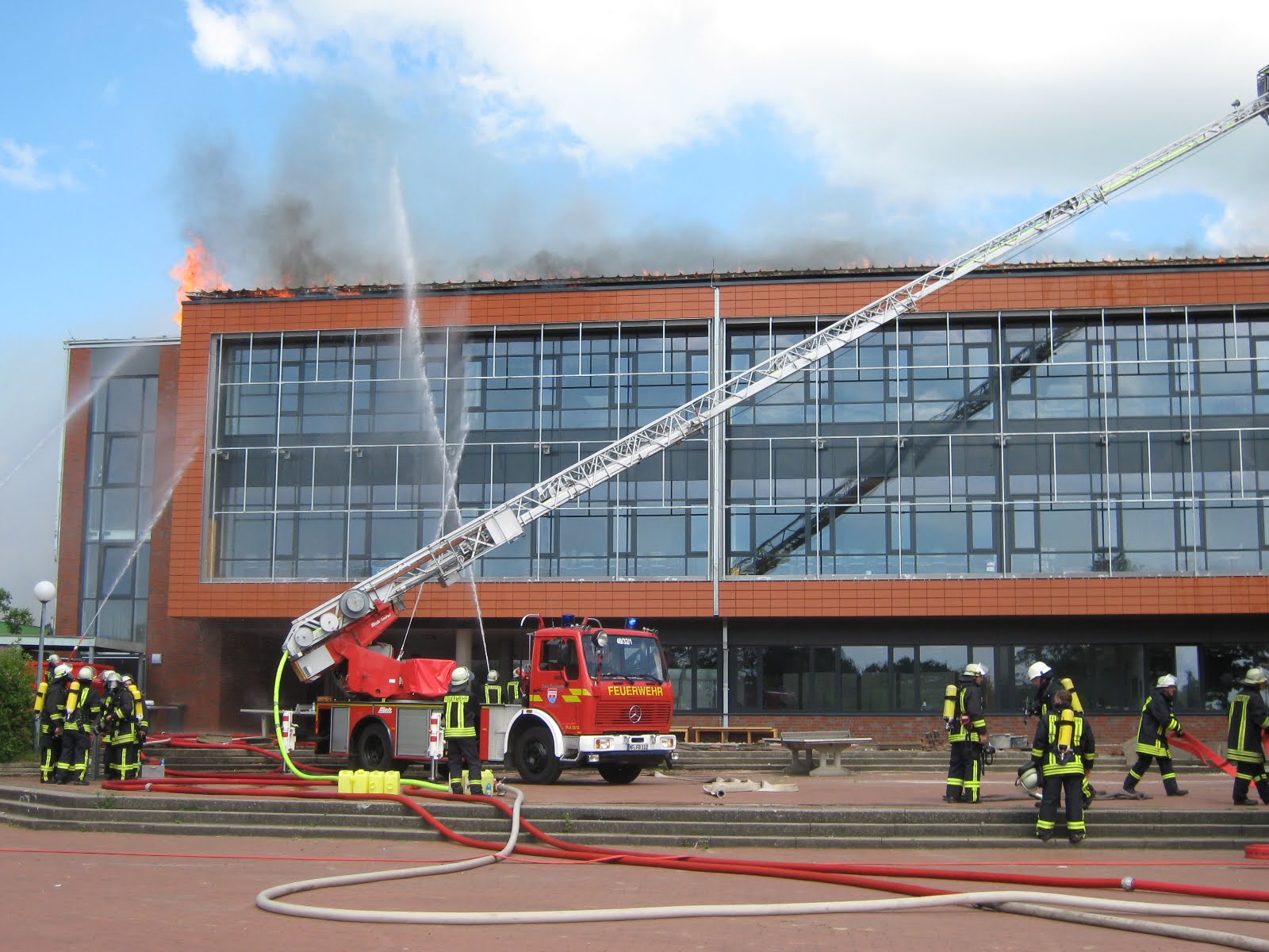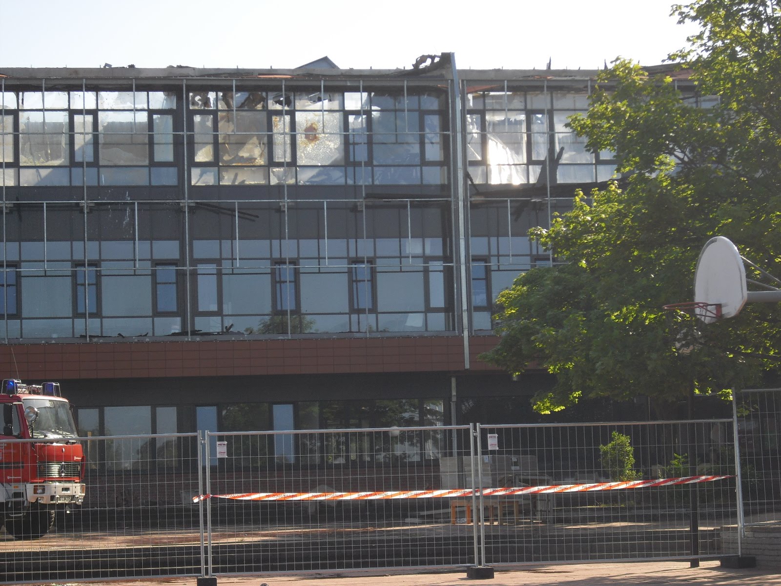 Yesterday (. 15.07) shortly after 11:00 clock broke the Inferno: First burned down the gymnasium of our school very quickly up to the ground , then shortly after 14.00-clock - attacked the fire also spread to the building and caused a total loss here!
